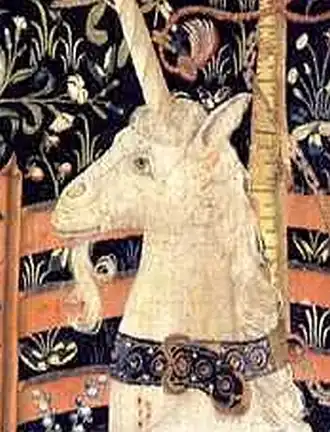 - ↑ Freeman, Margaret B. (1976). The Unicorn Tapestries. Metropolitan Museum of Art/Dutton. pp. 156 ff. ISBN 0-525-22643-5.