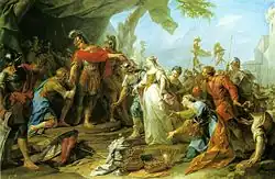 El significado moral del tema es el triunfo de la virtud sobre el deseo;[5] o sea, no tanto clemencia o perdón[6] como más bien continencia o autocontrol, lo contrario del vicio clásico denominado akrasia.[7] La figura de Escipión se exalta hasta límites heroicos y se le convierte en un modelo de comportamiento para los romanos. Es evidente la comparación de esta actitud con la opuesta que representa Agamenón en el comienzo de la Iliada, al resistirse a devolver a Criseida a su padre, el sacerdote Crises, lo que provocó el castigo de Apolo y una concatenación de hechos que llevaron al enfrentamiento con Aquiles (en alguna ocasión ambos episodios se han usado como tema para un pendant).[8]