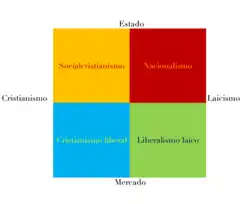 El libro hace también una clasificación de las derechas, según dos ejes: uno que va desde el Estado al Mercado y otro que va desde una idea laica a otra cristiana de la sociedad. Se distingue así una derecha socialcristiana, una nacionalpopular, una liberal laica y una liberal cristiana.