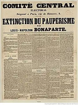 La extinción del pauperismo (en francés: De l'extinction du paupérisme) es un panfleto de Napoleón III Bonaparte publicado en 1844.[1] Desarrolla allí reflexiones sociales, influido en esto por las ideas saint-simonianas. Este trabajo está anclado en el contexto de la revolución industrial, el crecimiento económico y el desarrollo de una clase trabajadora, así como nuevas formas de miseria.