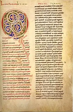 ![]() Primera página de una edición del s. XII, en latín. | ||