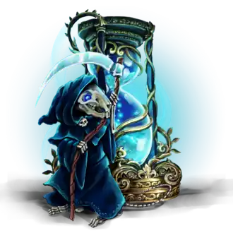 Ysabell (Hija adoptiva de su original) Mortimer Sto Helit (Yerno de su original) Susan Sto Helit (Nieta de su original y amiga) Muerte de las Pulgas (Derivación hermana) Azrael (Padre y Muerte Original) | |