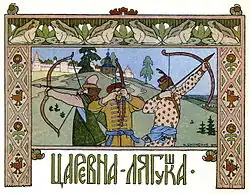 En las versiones rusas, el rey —preocupado por su sucesión— pide a sus tres hijos que lancen una flecha, cada uno en una dirección diferente, y que se casen con quienes las recojan. Las dos primeras son recogidas por mujeres; pero la flecha del más joven cae en una ciénaga, por lo que tiene que casarse con una rana. La rana resulta ser, en realidad, una joven maga, llamada Vasilisa, «la muy sabia», que había sido víctima de un maleficio, pero que, finalmente, recupera su aspecto humano.
