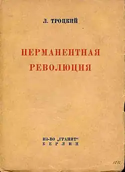 ![]() Portada de la primera edición en ruso de La revolución permanente. Berlín: Granit, 1930. | ||