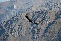 Transcurren los minutos y de pronto el narrador escucha un poderoso ruido, de algo que rodaba. De pronto, ve el paso de un majestuoso vuelo oblicuo de cóndores, a pocos metros de donde se halla. Tornando la mirada hacia abajo, observa rodar una masa oscura que arrojaba sangre por todos lados, hasta que llega al río, que se tiñe de rojo. Los cóndores vuelan en círculos y bajan uno tras otro para devorar a la presa. El narrador cree que se trata de un caballo o su jinete que se habían despeñado.[8]