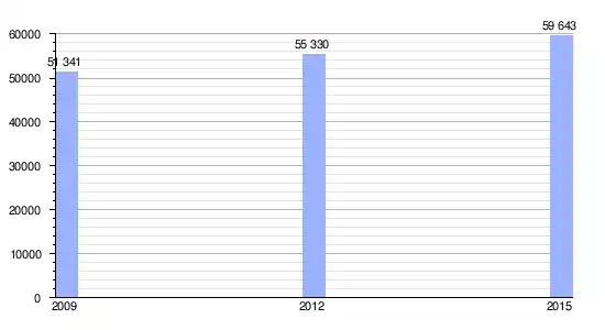 | Gráfica de evolución demográfica de Labady entre 2009 y 2015 |