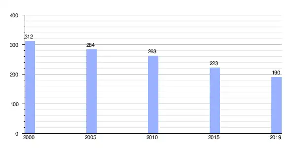 | Gráfica de evolución demográfica de Labrada entre 2000 y 2019 |
