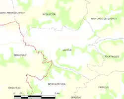 Lacour es una población y comuna francesa, en la región de Mediodía-Pirineos, departamento de Tarn y Garona, en el distrito de Castelsarrasin y cantón de Bourg-de-Visa.