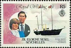 Diana, de veinte años, se convirtió en princesa de Gales cuando se casó con Carlos el 29 de julio de 1981. La boda se celebró en la Catedral de San Pablo, que ofrecía más asientos que la Abadía de Westminster, una iglesia que generalmente se usaba para nupcias reales.[25][22] El servicio fue ampliamente descrito como una «boda de cuento de hadas» y fue visto por una audiencia televisiva mundial de 750 millones de personas mientras 600 000 espectadores se alineaban en las calles para ver a la pareja en el camino a la ceremonia.[22][42] En el altar, Diana invirtió inadvertidamente el orden de los dos primeros nombres de Carlos, diciendo «Felipe Carlos» Arturo Jorge en su lugar.[42] Ella no dijo que lo «obedecería»; ese voto tradicional quedó fuera a pedido de la pareja, lo que provocó algún comentario en su momento.[43] Diana usó un vestido valorado en £ 9000 (equivalente a £ 34 750 en 2019) con un tren de 25 pies (7,62 m).[44]