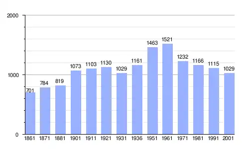 | Gráfica de evolución demográfica de Laerru entre 1861 y 2001 |