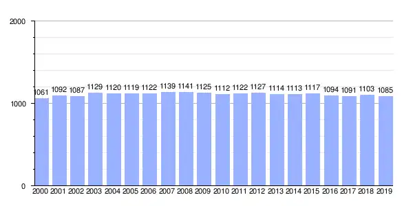 | Gráfica de evolución demográfica de Lago entre 2000 y 2019 |