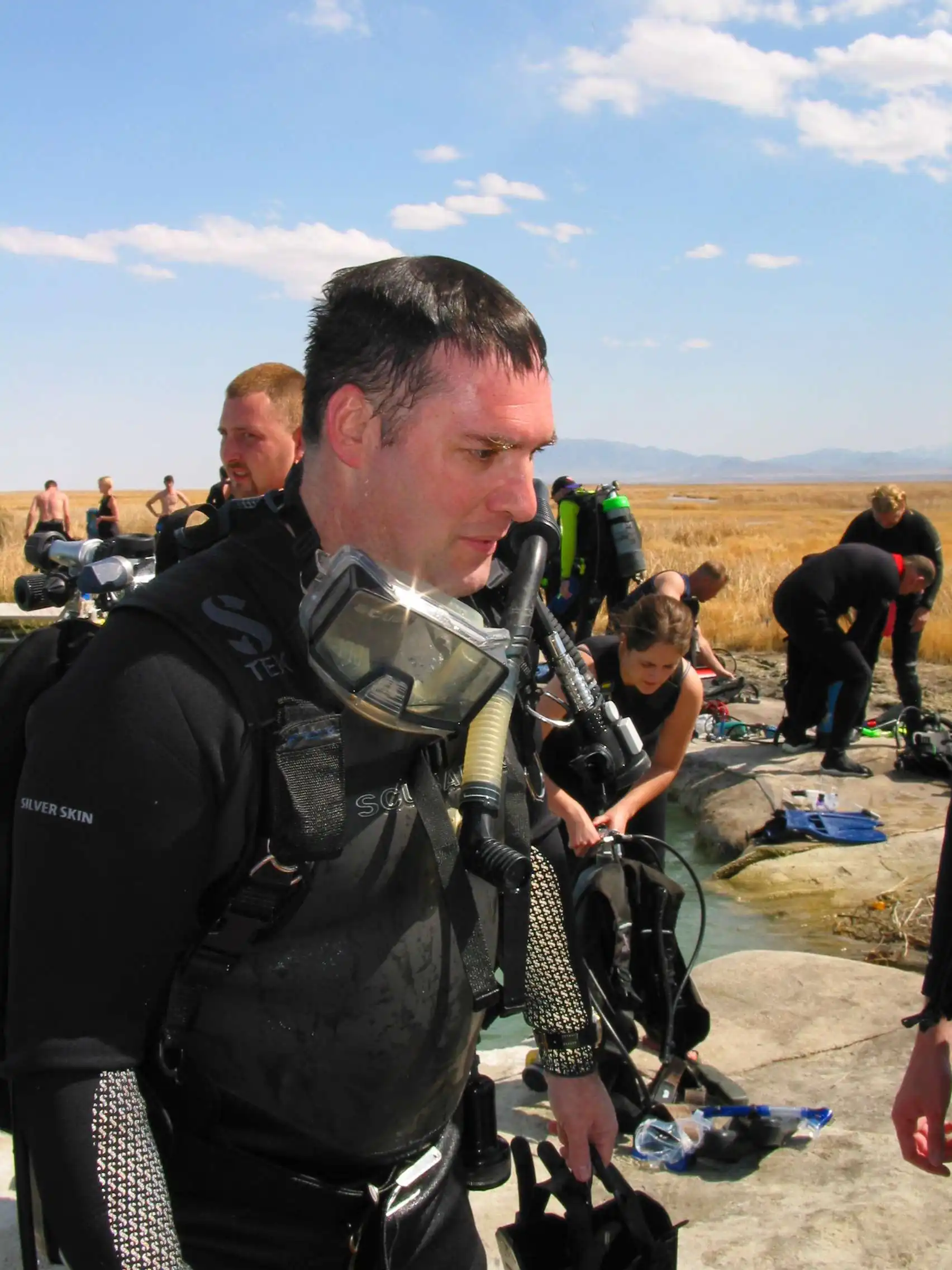 El lago Blue es un lugar muy popular para los buceadores de Utah y Nevada. Como es cálido durante todo el año y de aguas bastante transparentes es muy utilizado durante los fines de semana para entrenamientos de Buceo, con cursos como los de imparte la Universidad de Utah. Otros lagos cercanos de zonas montañosas son claros, pero fríos, incluso a principios de otoño, y otros de aguas más cálidas tienden a ser más turbios. Los grandes volúmenes de aguas claras subterráneas que recibe constantemente el lago Blue proporcionan visibilidad submarina de hasta 12 m, y durante todo el año las temperaturas en el fondo son de aproximadamente 29 °C. Las temperaturas de la superficie varían de los 20 °C) en invierno hasta los 25 °C en verano. El lago está lleno de peces de agua caliente, en su mayoría lubinas, tilapias, peces luna y azulejos. Los entusiastas del buceo han colocado una serie de objetos en el fondo para añadir interés, entre los que se pueden contar varias esculturas metálicas de animales marinos, embarcaciones, e incluso muebles en los que pueden sentarse frente a un televisor. Otra atracción para los buceadores son las aguas termales burbuejeantes que brotan del fondo.