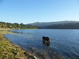 Es conocido por sus tibias aguas y por la presencia del cisne de cuello negro que migró a este lago procedente del río Cruces y del lago Budi a principios de 2001. Este lago estaba contaminado con un alga conocida como luchecillo (E. densa) desde al menos 1987, siendo el luchecillo un alimento para estos cisnes.[2]