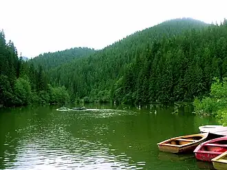 El lago Rojo (en rumano: Lacul Roșu) es un espectacular y hermoso lago montañés que se encuentra a 26 kilómetros de la localidad de Gheorgheni, Judeţ[1] de Harghita, Rumanía.