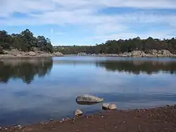 El lago, originado por la represa de las aguas de dos ríos, tiene una longitud de 3 km, forma de U y una superficie de 40 ha (hectáreas). Es un conocido destino turístico debido a sus hermosos paisajes, al estar rodeado de grandes bosques de coníferas y otros árboles (encinos, madroños) y espectaculares formaciones rocosas. El lago es asimismo destino de turismo de aventura, con lugares para acampar, refugios e instalaciones turísticas administradas por la comunidad indígena tarahumara.