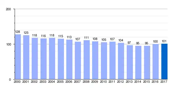 | Gráfica de evolución demográfica de Lagrán[1] entre 2000 y 2017 |
