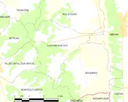 - ↑ INSEE, Datos de población para el año 2012 de Laguian-Mazous (en francés).