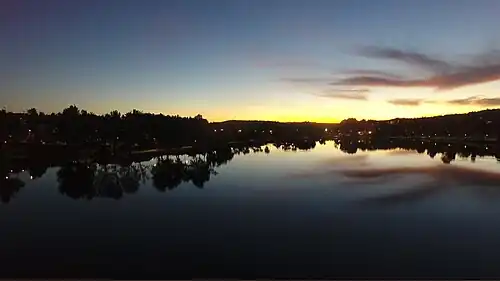 ![]() Turistas bañándose y practicando deportes náuticos en el lago "Laguna La Señoraza". | ||
