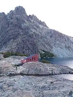 En la margen este de la laguna se encuentra el Refugio Italia – Manfredo Segre, el cual es propiedad del Club Andino Bariloche. Este refugio construido en piedra tiene capacidad para el pernocte de unas 50 personas.