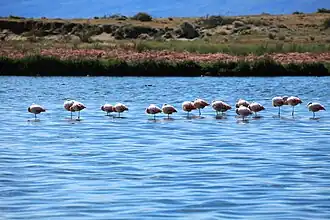 Ejemplares de flamenco austral (Phoenicopterus chilensis). -