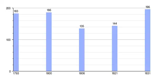 | Gráfica de evolución demográfica de Laharie entre 1793 y 1831 |