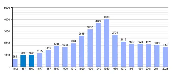 | Gráfica de evolución demográfica de Lahiguera[2] entre 1842 y 2021 |