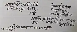 Debajo pueden verse unas líneas dirigidas a un estudiante donde interpreta un verso en sánscrito: "Aquel que ha obtenido un estado de calma en que sus ojos no parpadean ha dominado el Sambhabi Mudra"-concentrar la atención en el punto medio-.