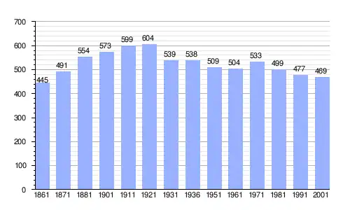 | Gráfica de evolución demográfica de Laino entre 1861 y 2001 |