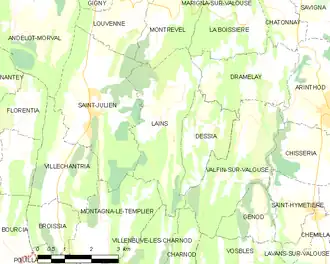 - ↑ Página donde se especifican, entre otras cosas, los datos demográficos de la comuna de Lains entre los años 1793 y 2006. Consultado el 17 de noviembre de 2016 (en francés)
