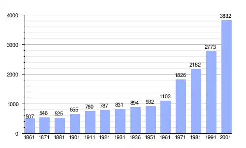 | Gráfica de evolución demográfica de Lallio entre 1861 y 2001 |
