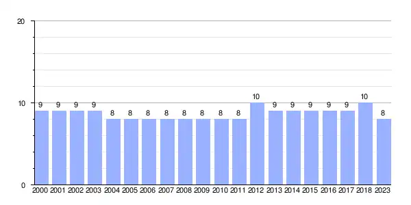 | Gráfica de evolución demográfica de Lameiro entre 2000 y 2023 |