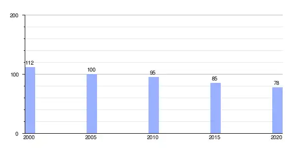 | Gráfica de evolución demográfica de Lamela (parroquia) entre 2000 y 2020 |