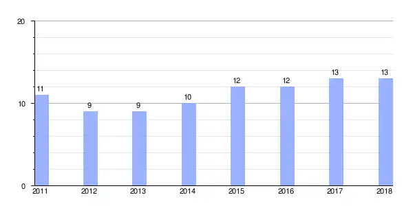 | Gráfica de evolución demográfica de Lamparte entre 2011 y 2018 |
