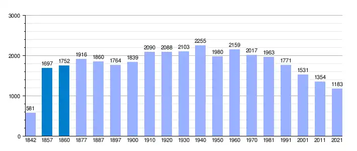 | Gráfica de evolución demográfica de Lanaja[12] entre 1842 y 2021 |
