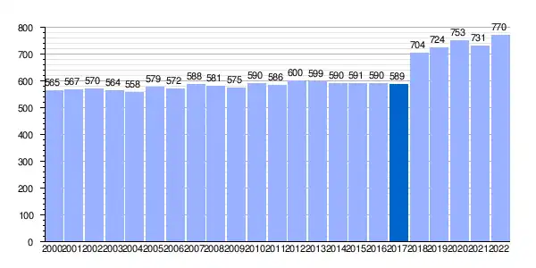 | Gráfica de evolución demográfica de Lanciego[1] entre 2000 y 2022 |