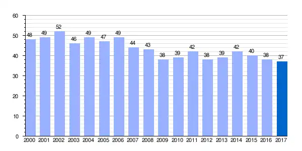 | Gráfica de evolución demográfica de Landa[1] entre 2000 y 2017 |