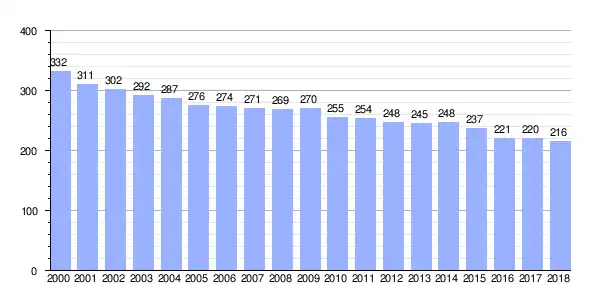| Gráfica de evolución demográfica de Landeira (parroquia) entre 2000 y 2018 |