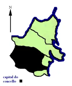 - ↑ Miralbes Bedera, Rosario; de Torres Luna, María Pilar; Rodríguez Martínez-Conde, Rafael (1979). «Ortigueira». Mapa de límites de las parroquias de Galicia. Santiago de Compostela: Imprenta Paredes. p. 19. ISBN 8460014142.