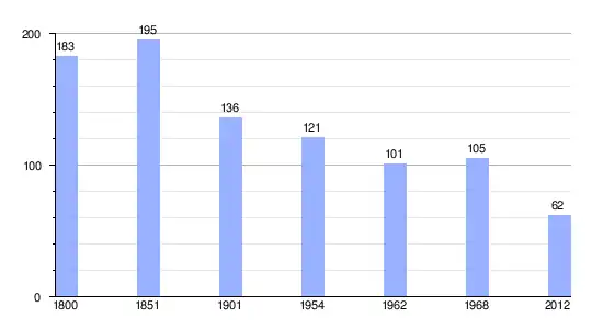 Los datos entre 1800 y 1968 se han cogido de la página francesa EHESS/Cassini.[5] Los demás datos se han cogido de la página del INSEE.[6]