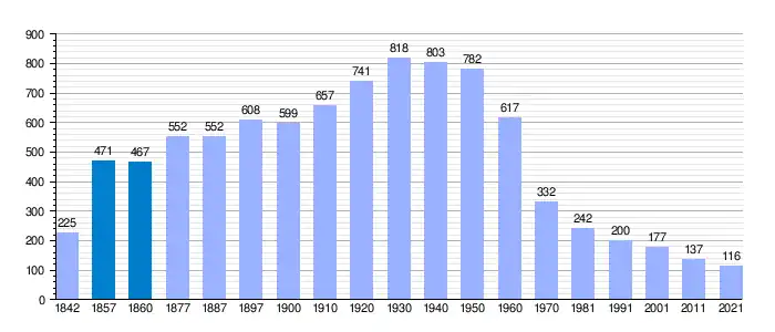 Hacia mediados del siglo XIX, el lugar tenía contabilizada una población de 225 habitantes.[4] Aparece descrito en el décimo volumen del Diccionario geográfico-estadístico-histórico de España y sus posesiones de Ultramar de Pascual Madoz de la siguiente manera: