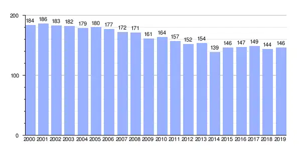 | Gráfica de evolución demográfica de Langueirón (parroquia) entre 2000 y 2019 |