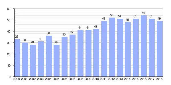 | Gráfica de evolución demográfica de Larín de Arriba entre 2000 y 2018 |