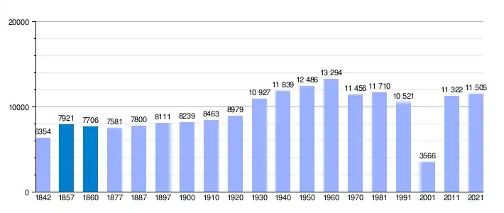 | Gráfica de evolución demográfica de Laracha[6] entre 1842 y 2021 |