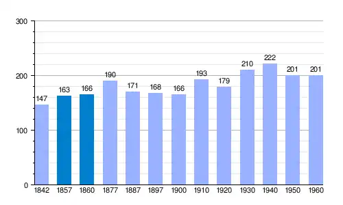 | Gráfica de evolución demográfica de Laranueva[3] entre 1842 y 1960 |