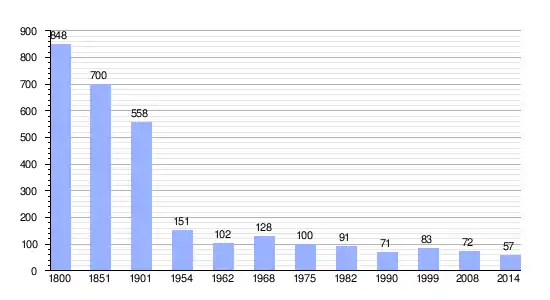 | Gráfica de evolución demográfica de Larche entre 1800 y 2014 |