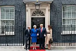 En junio de 2019, en lo que la prensa describió como un photobombing, se vio a Larry en el alféizar de la ventana afuera del Número 10 mientras Theresa May y su esposo Philip May posaban con el presidente de los Estados Unidos, Donald Trump, y su esposa Melania Trump al comienzo del estado de Trump. visita al Reino Unido; Más tarde se refugió de la lluvia bajo el Cadillac blindado de Trump y no pudo ser persuadido, lo que llevó a Jon Sopel de la BBC a tuitear: «ÚLTIMA HORA: los manifestantes anti-Trump no logran detener la caravana de @realDonaldTrump, pero @Number10cat sí».[21][22]