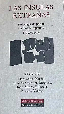 - ↑ Jara, Luis (2004). «Eduardo Milán, Andrés Sánchez Robayna, José Ángel Valente y Blanca Varela (sel.), Las ínsulas extrañas. Antología de poesía en lengua española (1950-2000)». Caravelle. Cahiers du monde hispanique et luso-brésilien 83 (1): 284-286. Consultado el 8 de enero de 2023.