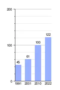 | Gráfica de evolución demográfica de Las Aguadas entre 1991 y 2022 |