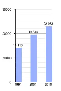 Cuenta con 22,953 habitantes (Indec, 2010), lo que representa un incremento del 17 % frente a los 19,544 habitantes (Indec, 2001) del censo anterior.[3]​ En el municipio el total ascendía a los 26,955 habitantes (Indec, 2001).[4]