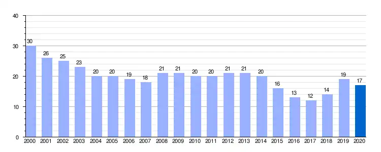 | Gráfica de evolución demográfica de Las Cabañas de Castilla entre 2000 y 2020 |